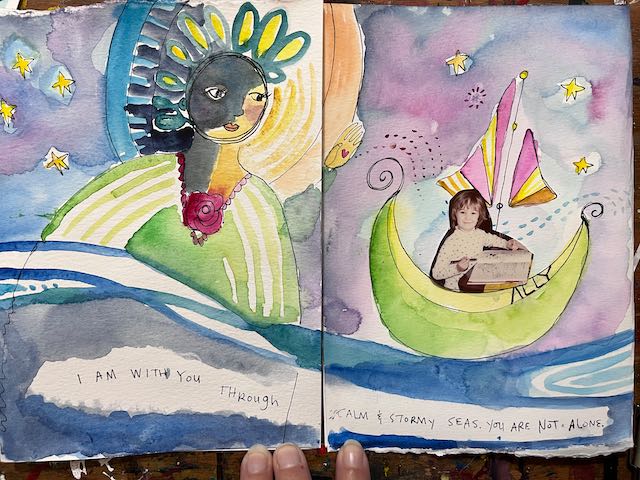 we’ll call to her via word and image to connect with her and make a page spread for our treasure book. Let’s take a seat in her presence